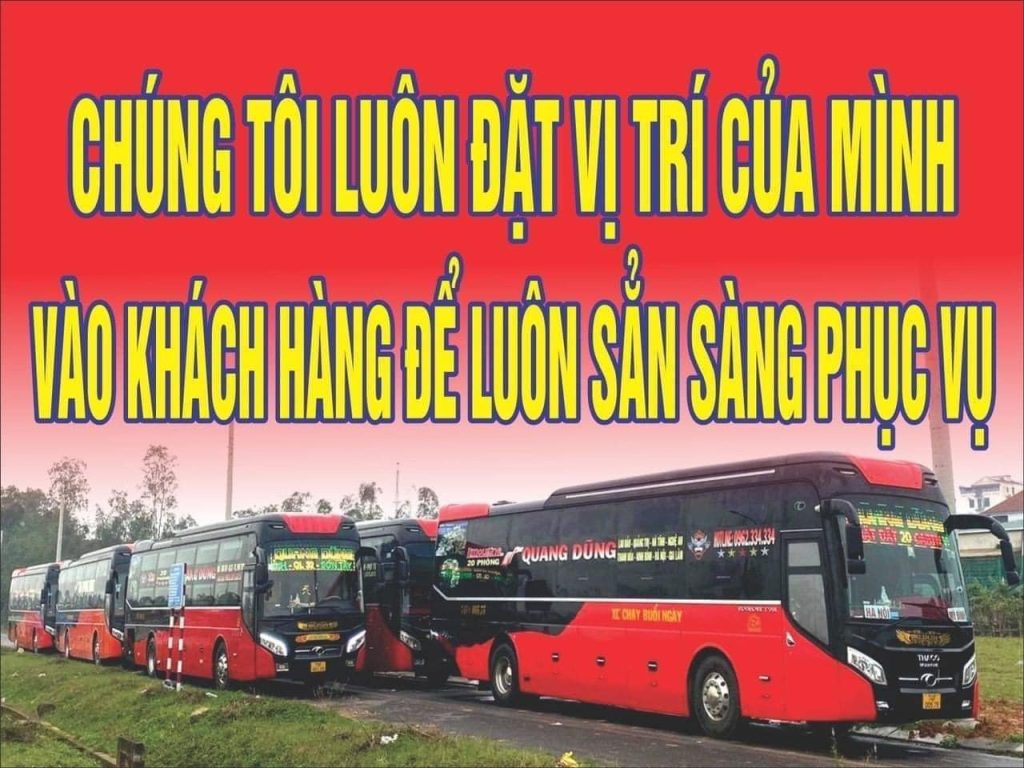 | Quang Dũng Opentour | Giường nằm | 460.000đ – 990.000đ | 0h00-23h30 (tùy chuyến) | Chưa cập nhật cụ thể | Nước suối, khăn lạnh, wifi, trung chuyển | 0828211222 |