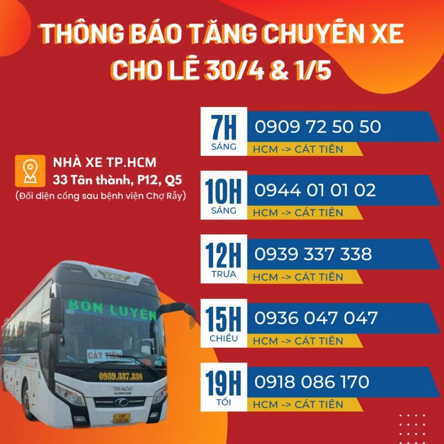 Để biết thêm thông tin chi tiết về điểm đón, giờ khởi hành chính xác và các dịch vụ đi kèm, quý khách vui lòng liên hệ hotline 0828211222. (Thông tin địa chỉ và số điện thoại cụ thể của nhà xe Bốn Luyện Express không được cung cấp trong dữ liệu nghiên cứu).